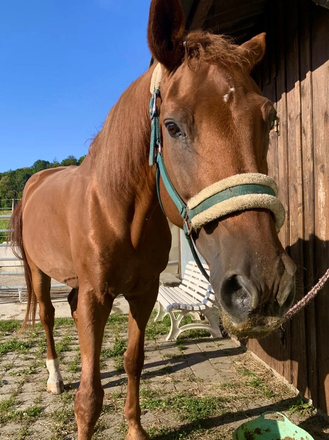 Deine jungen Jahre waren geprägt von Kraft und Fleiss im Military-Sport, doch die Spuren dieser Zeiten machten sich in deinen letzten Jahren immer stärker bemerkbar. Zu Deinem wohlverdienten Ruhestand durftest Du auf unsere Weide in Buchs ziehen. Trotz Deiner Schmerzen blieb Dein Herz voller Sanftmut, und als unser Knuddelbär hast Du uns jeden Tag bereichert. Nun bist Du frei vom Leid - Du fehlst uns sehr!